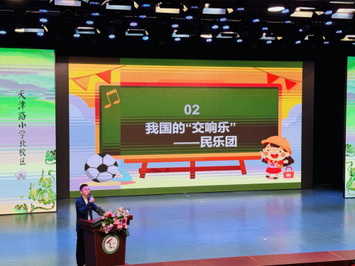 在系統(tǒng)講解交響樂發(fā)展脈絡(luò)、樂器分類與團(tuán)隊(duì)協(xié)作意義的基礎(chǔ)上,程博士特意將西方交響樂團(tuán)與中國民族樂團(tuán)置于同一視野。"我們的民族樂隊(duì)承載數(shù)千年歷史智慧,每件樂器都流淌著民族文化基因。" 他用通俗語言闡釋專業(yè)觀點(diǎn),配合案例對(duì)比中西樂器的音色與內(nèi)涵,讓孩子們?cè)诹私饨豁憳返耐瑫r(shí),更清晰認(rèn)識(shí)中國民族音樂的獨(dú)特魅力與深厚底蘊(yùn)。這種潛移默化的文化浸潤,正是新時(shí)代美育工作的生動(dòng)實(shí)踐。當(dāng)孩子們眼中閃爍對(duì)民族樂器的好奇與自豪,文化自信的種子已在心中萌芽。